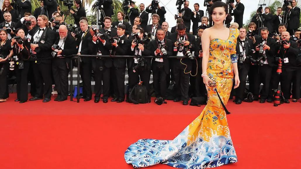 2010年,在戛纳电影节开幕式上,范冰冰穿龙袍摆裙走上了开幕红毯,大胆的行为一下子吸引了无数摄像机对她咔咔咔。
