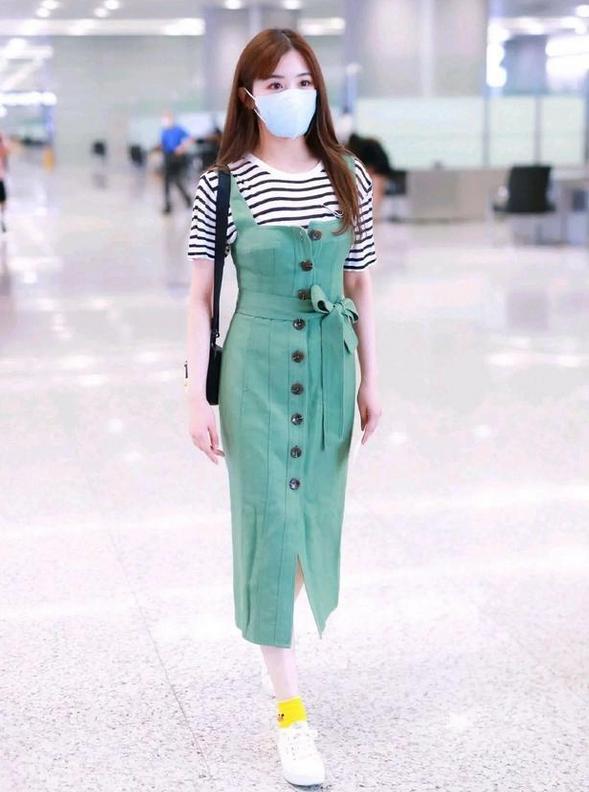 看到瘦身成功之后的张含韵,终于明白为啥女生要减肥了,简直美爆了。而且瘦了之后,连衣品都更绝了。只见她身穿一条绿色背带裙,绿色衬托肤色又显得清新优雅,腰间系带是秀出曼妙身姿的关键,挤成蝴蝶结还能有装饰效果呢。这样的裙装可以搭配条纹T恤,干净清爽又带有休闲范,出门约会或者逛街之类的,再搭配一双小白鞋,就很美了。
