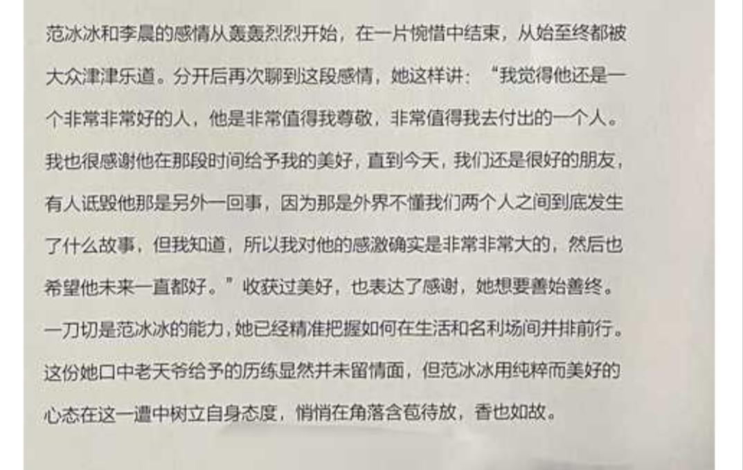 直到不久前,范冰冰在某杂志专访时首次爆出与李晨的分手内幕,大家感慨他们这段感情着实太可惜。