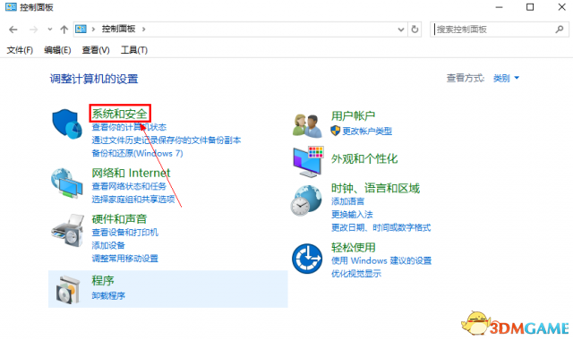 3.在控制面板主页点击系统与安全选项,如下图所示