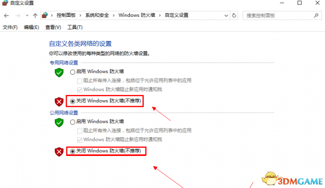 6.我们将所有防火墙关闭,然后点击应用按钮,重新启动游戏即可,如下图所示