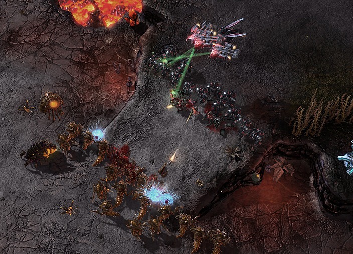 地刺选择这样的进化方式还有一个原因就是实际上虫群本身的生理结构进化就有一个矛盾的地方。因为异虫整个种群单位的进化原理并不是我们所理解的自然选择结果,本质上一切的进化都是已经被安排好了的,在需要的地方做到了最极端的进化,在不需要的地方就会被完全简化。例如虫群的攻击和繁殖能力被无限放大,而智力为了便于主宰的控制都还处于非常原始的阶段。因此仔细观察的话,虽然刺蛇和地刺他们的头部看起来都很大,但真正的脑容量都非常小,这样他们就只会完全听命于主宰的命令。