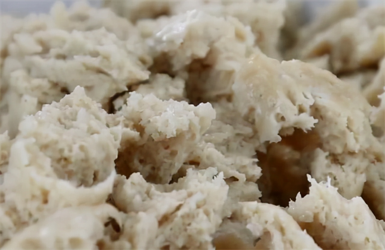 6.现在面筋就蒸熟了,把面筋晾凉后直接用手撕成小块装盘里。