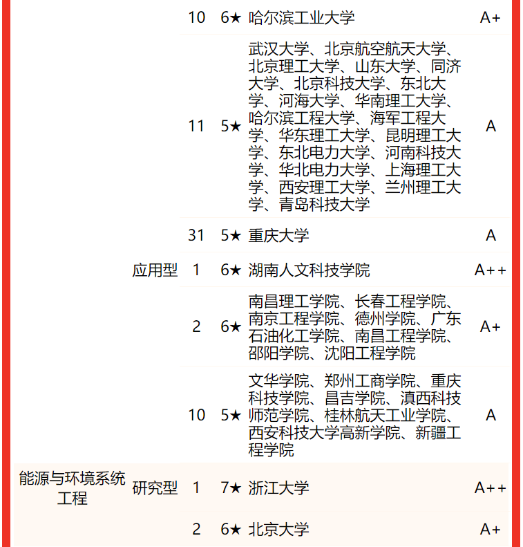 在能源与动力工程专业排名(应用型)中, 湖南人文科技学院荣得中国六星级应用型专业(6★),挺进中国顶尖应用型专业行列,稳居校友会2022中国大学能源与动力工程专业排名(应用型)第一。