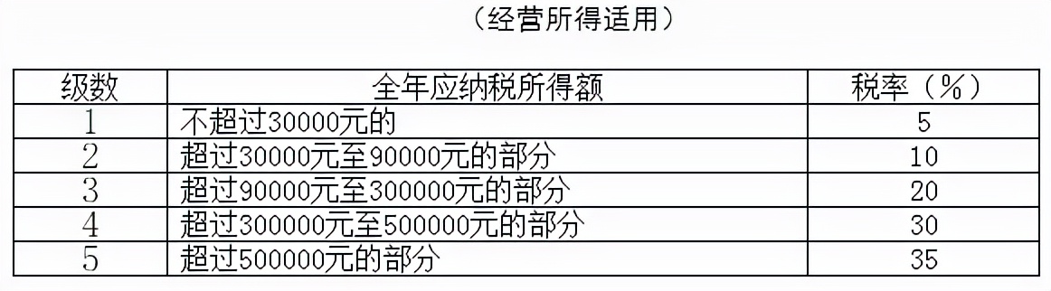 (2)经营所得,适用百分之五至百分之三十五的超额累进税率(税率表附后);