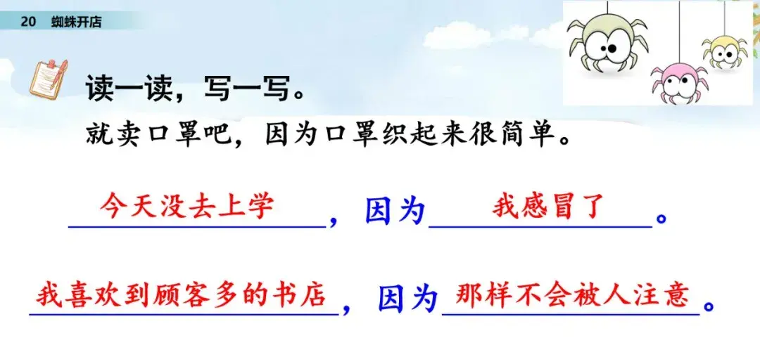 2.蜘蛛决定开一家商店。卖什么呢?就卖口罩吧,因为口罩织起来很简单。