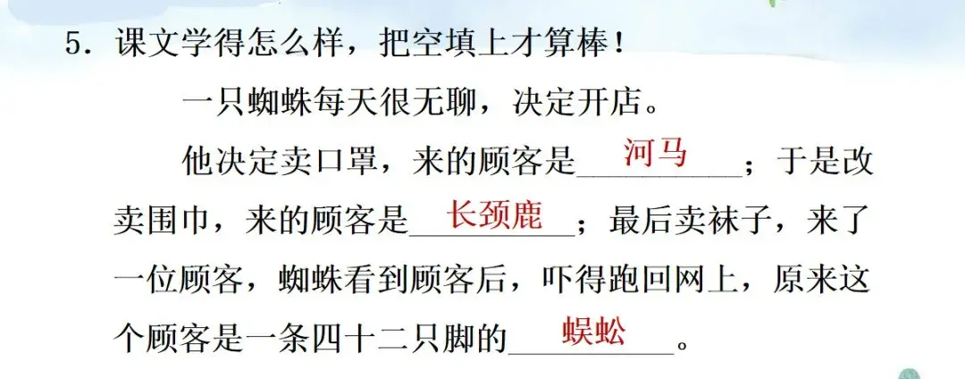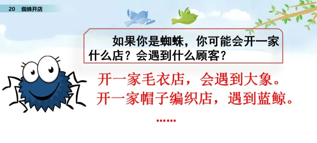 6.示例:我觉得蜘蛛开店还可以卖帽子,它可以卖给小松鼠。