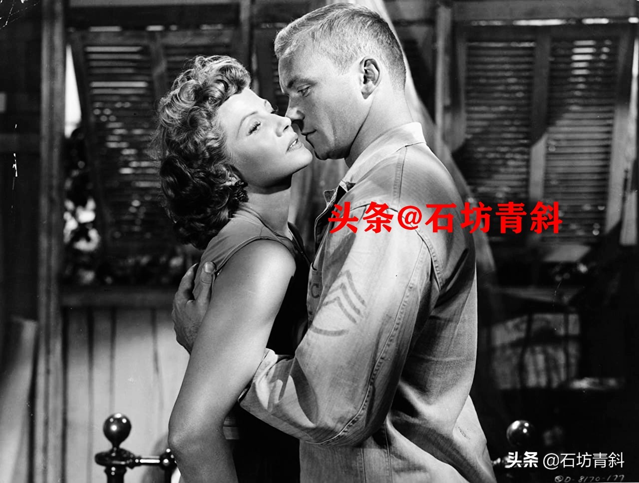 电影《军中红粉Miss Sadie Thompson》(1953)剧照,奥尔多·雷Aldo Ray(右)和丽塔·海华斯Rita Hayworth
