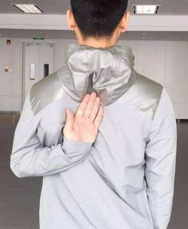 3、向后背手,是否能够摸到脊柱正中的位置,大概是女性内衣扣的位置。如果能完成,说明肩关节旋后的功能没问题。