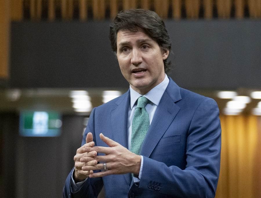 2022年2月17日,加拿大渥太华,加拿大总理特鲁多谈论《紧急状态法》。加拿大公民自由协会当日宣布,计划起诉该国政府为应对国内抗议而启用《紧急状态法》。
