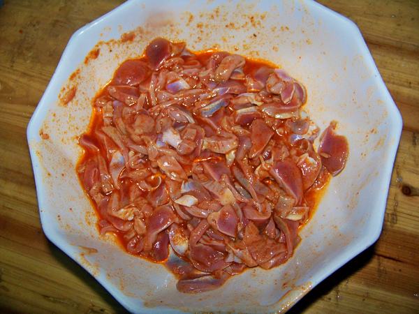 后来外婆看见了我的这个鸡胗,问我怎么做的,Moio一五一十的把自己炒鸡胗的方法告诉了她,她和我说炒鸡胗时,这样子直接焯水是不对的,咱们不能少了这1步,否则这个鸡胗僵硬不入味!这一步就是腌制鸡胗,下面Moio就教大家做一道家常的酸辣鸡胗。感兴趣的朋友可以一起做做看哦!