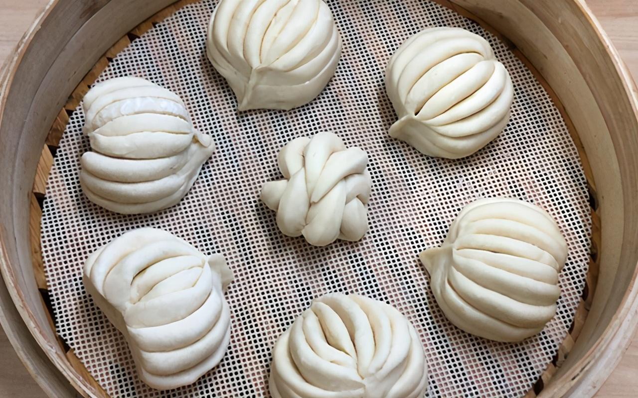 第五步:把笼布打湿,再放上做好的花卷,二次醒发至按压皮子轻松回弹;锅中加入足量清水,水开计时蒸15分钟再焖3分钟即可开盖,好看又好吃的花卷就做好了。