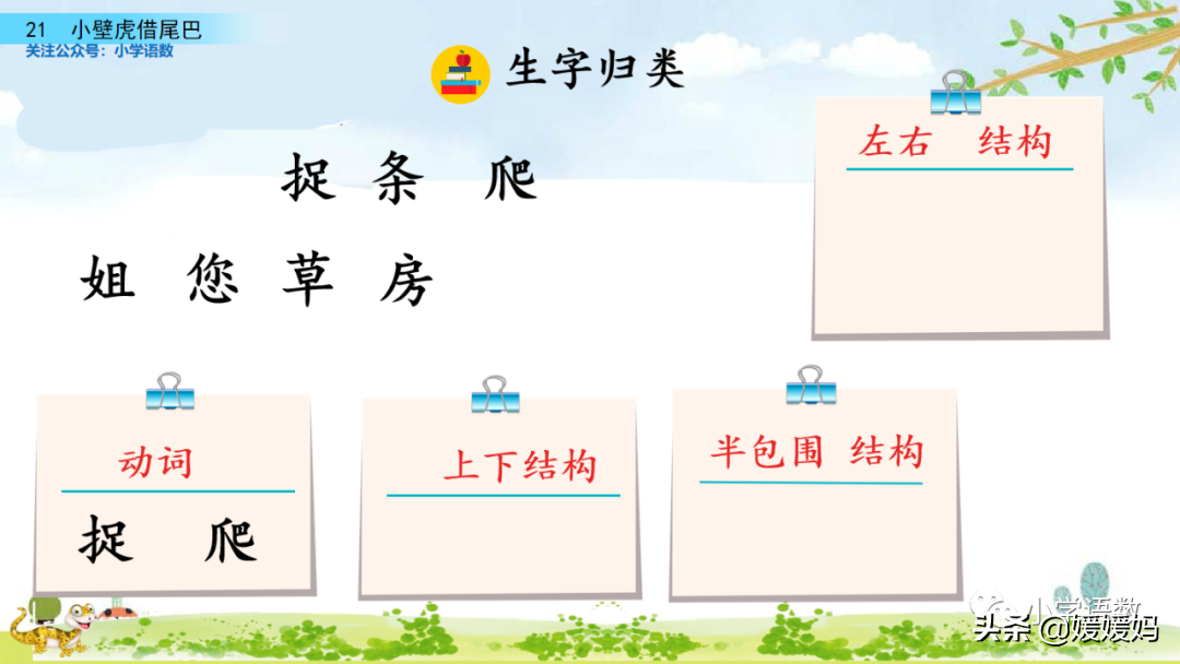 2、小壁虎借不到尾巴,心里很难过。他爬呀爬,爬回家里找妈妈。