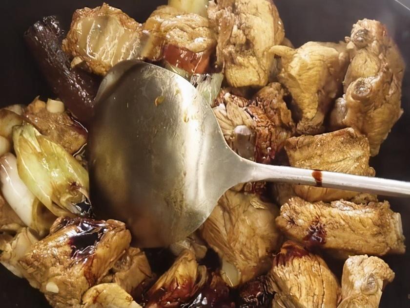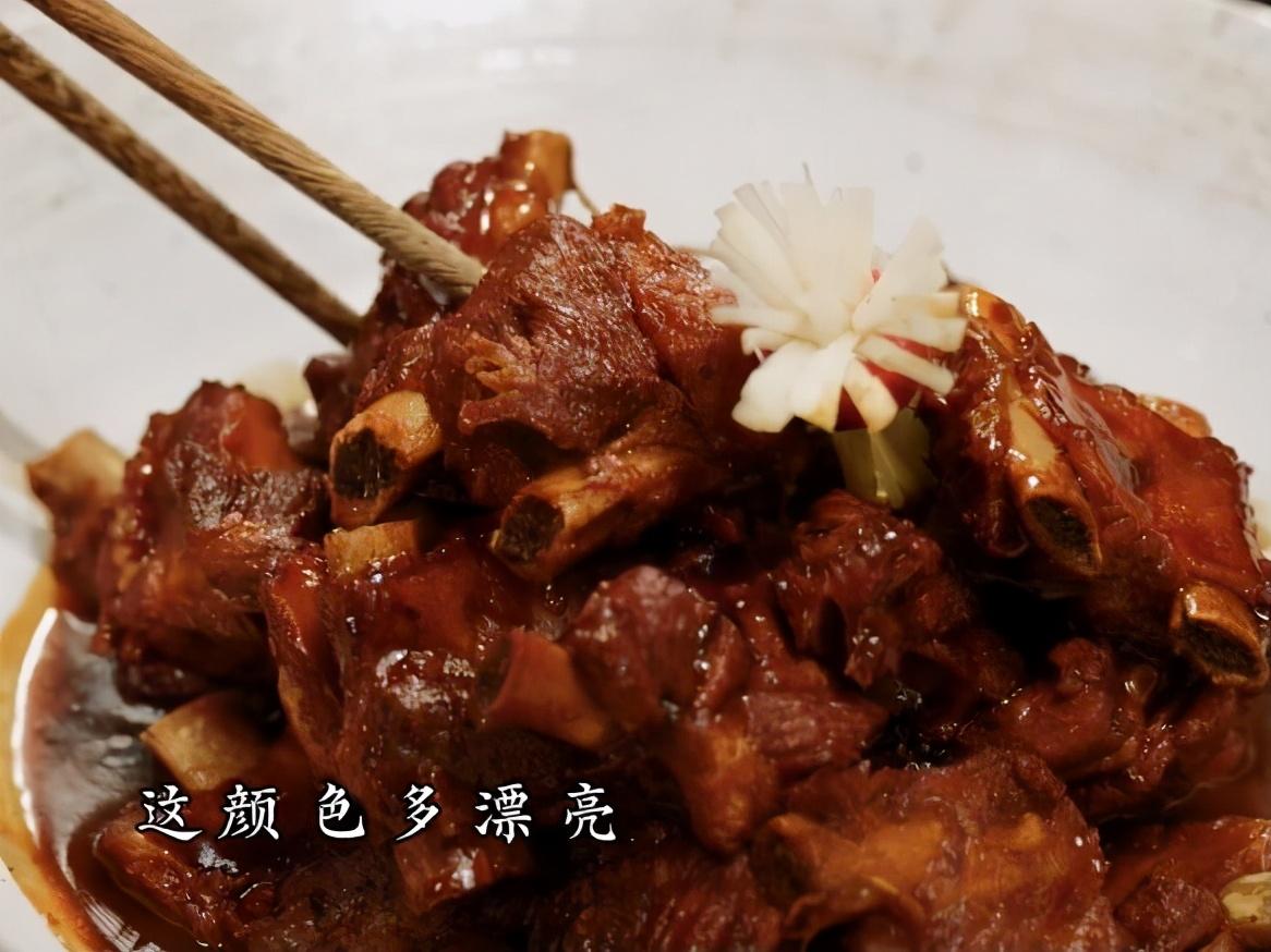 这个排骨,一定是凉水下锅焯水,炒的时候要均匀上色,然后加入开水大火炖,这个大火炖的时间一定不能低于十分钟,这个也很关键,还有就是收汤汁的时候,排骨软烂了,可以先把排骨盛出。