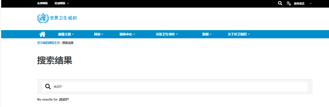 世界卫生组织官方网站搜索结果截图