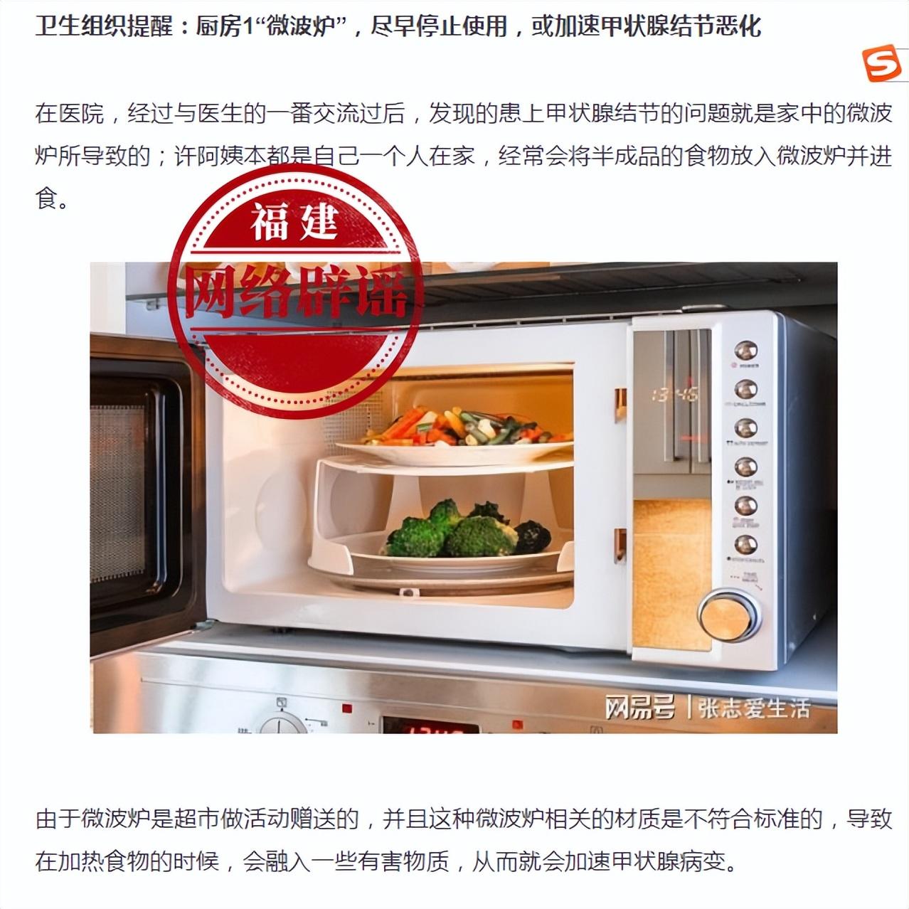 近段时间,网络上传播着尽早停止使用微波炉的消息,消息称:世界卫生组织提醒:厨房微波炉尽早停止使用,或加速甲状腺结节恶化。