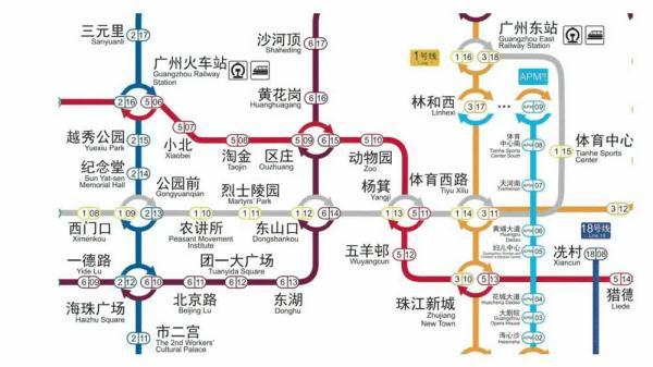 举例1:体育西路站去往广州火车站,可选择3号线经珠江新城站换乘5号线至广州火车站。