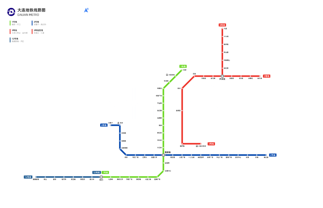 大连地铁第一条线路大连地铁3号线于2003年5月1日正式开通运营。截至2021年12月,大连地铁运营线路共有5条,五条线路全部采用地铁系统,运营里程共计201.03千米,共设车站77座。