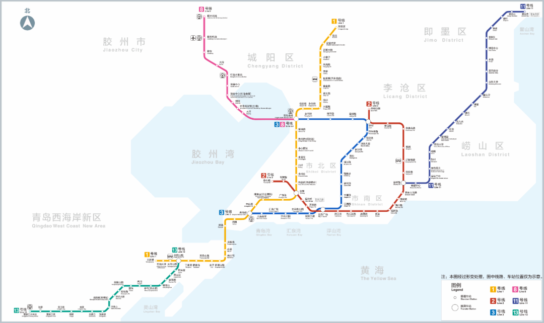 青岛地铁首条线路于2015年12月16日开通试运营。截至2021年12月,青岛地铁开通运营线路共有6条,分别为青岛地铁1号线(含7号线一期),共设车站41座,全长60.0千米;青岛地铁2号线一期,共设车站21座,全长25.2千米;青岛地铁3号线,共设车站22座,全长24.8千米;青岛地铁8号线北段,共设车站11座,全长48.3千米;青岛地铁11号线,共设车站22座,全长58.4千米;青岛地铁13号线一期和二期南段,共设车站21座,全长67.6千米。