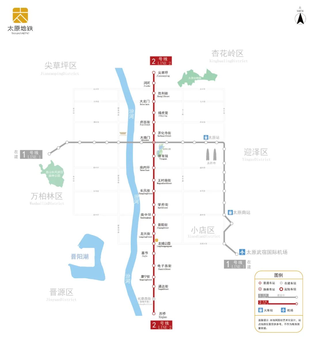 太原其第一条地铁线路(2号线)于2020年12月26日开通运营,截至2020年12月,太原地铁运营线路共1条,为太原地铁2号线,总里程23.65千米,车站23座。