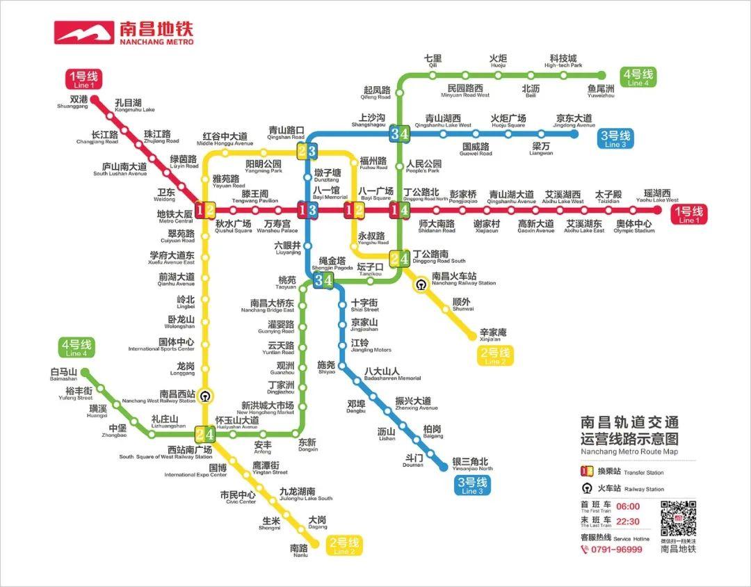 南昌地铁首条线路于2015年12月26日开通载客试运营。截至2021年12月31日,南昌地铁已开通运营4条线路,分别是南昌地铁1号线、南昌地铁2号线、南昌地铁3号线和南昌地铁4号线,共设车站94座(含换乘站9座,不重复计算),运营线路总长128.45千米。