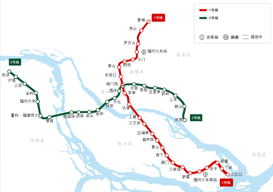 福州地铁第一条线路于2016年5月18日开通初期运营,截至2021年1月,福州地铁运营线路共有2条,分别为福州地铁1号线、福州地铁2号线,运营里程58.4千米,共设车站46座(换乘站按1座车站计)。