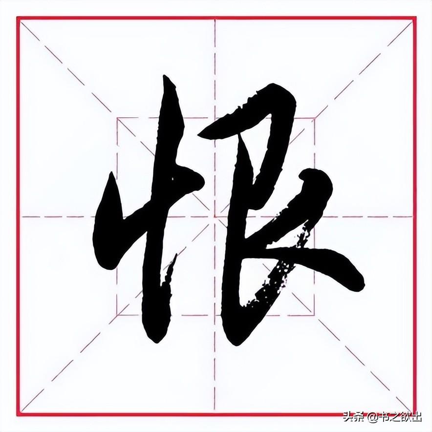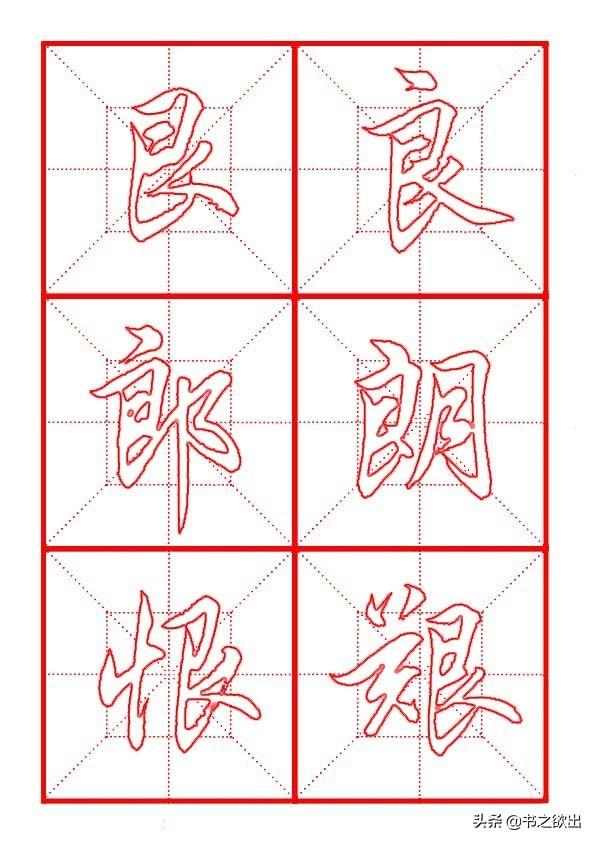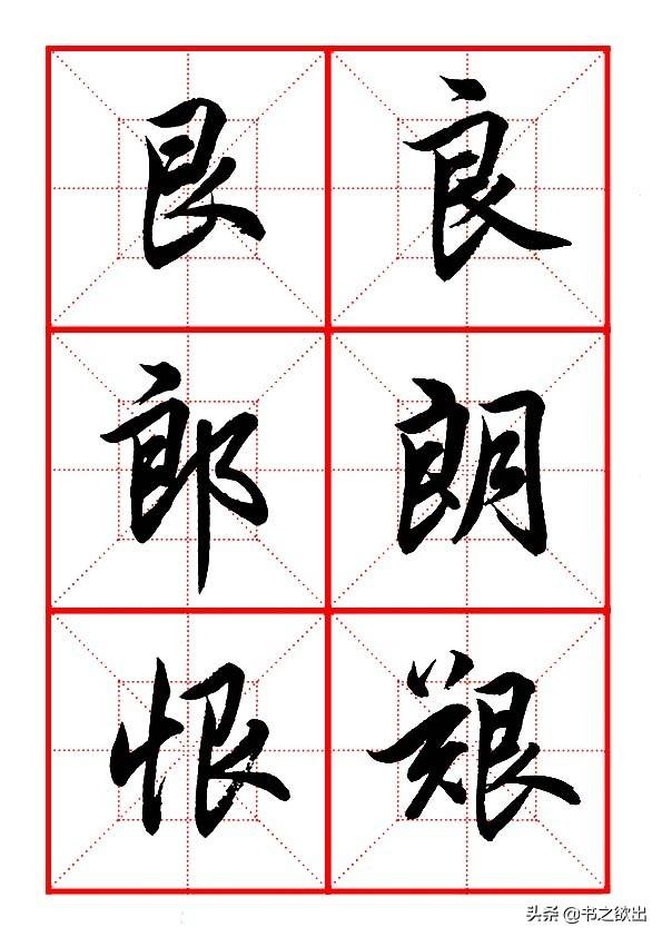行书中的书写速度相对较快,需要注意转折处的运笔使转,避免出现毫无棱角、软弱无力的情况。同时行书中艮字中的小横通常可省略。