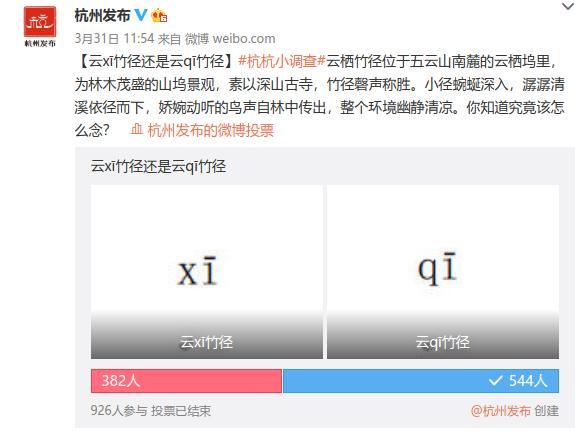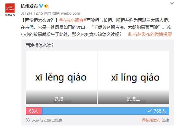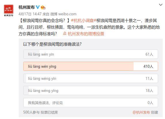 从微博投票结果来看,关注杭州发布的同学们语文功底非常扎实,闻是前鼻音,莺是后鼻音,都搞得非常清楚呢!
