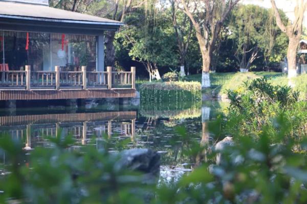 这是富阳的新晋网红打卡地。湖水清澈、波光粼粼,两岸绿植环绕,湖心的几座小岛以栈桥相连,布景精致。