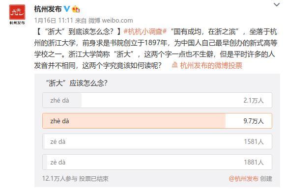 在杭杭小调查投票中,约17%的网友将浙大念成zhé dà,其实浙只有一个发音那就是第四声zhè哦!