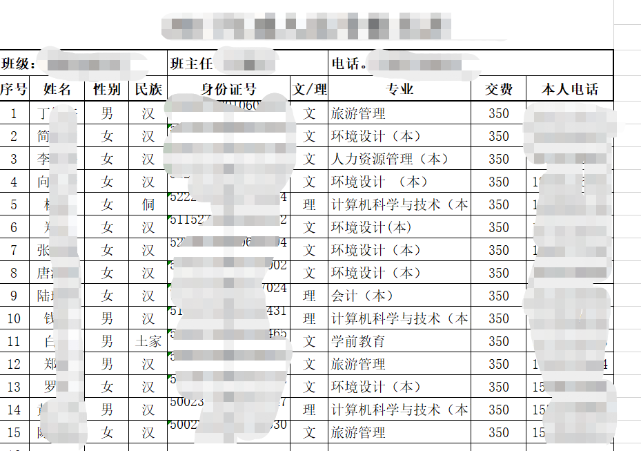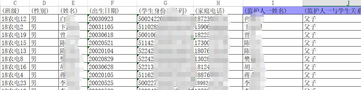 其中有一份文档,里面清楚写着学生们的姓名、身份证、电话号码、家庭地址、监护人等信息。