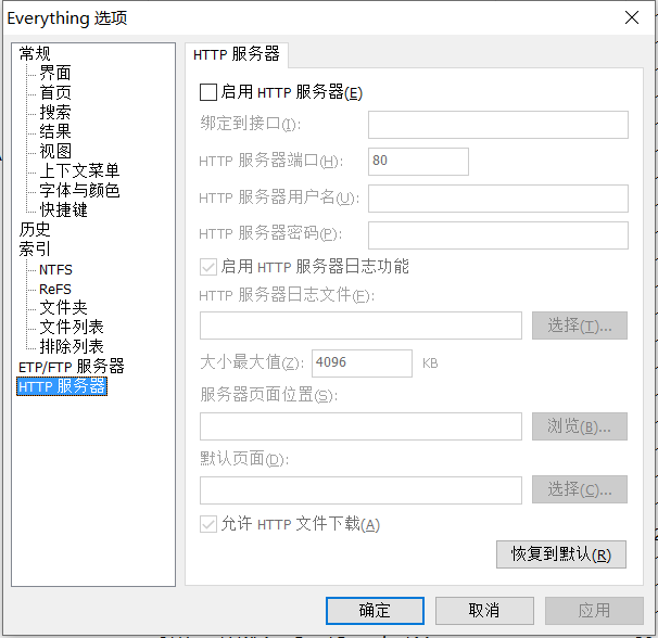 启动「HTTP 服务器」后,电脑相当于连通Everything的服务器。