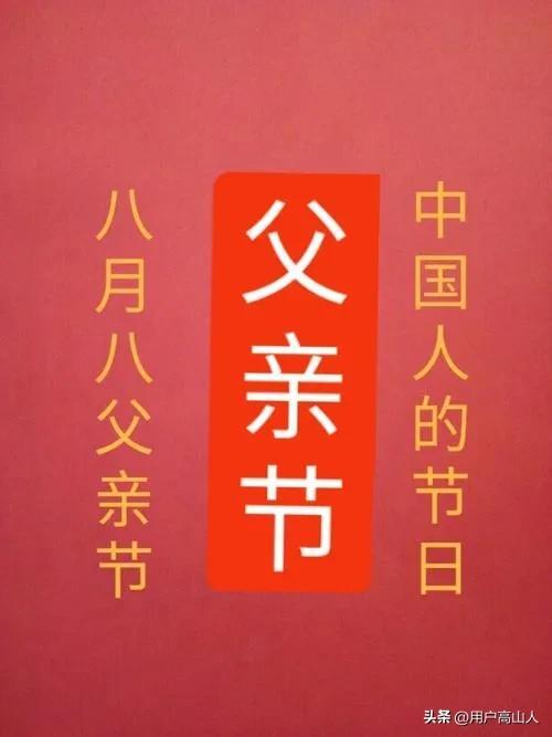 今天是2022年 8月8日,清晨当我打开手机时,偶尔看到个别微信好友在微信中发有父亲节的节日问候祝福语!但氛围远不及6月份洋父亲节时那么浓厚。这多少让人有些无语,甚至是心寒,因而由此可以断定,知道今天(即每年的8月8日)是我们中国人的父亲节并无几人,这不仅与国人喜欢跟风赶时髦密切相关,同时也说明西方文化实在是太具入侵性了,而我们的文化自信依然任重而道远。至此,我不妨冒昧地问一句,朋友,您知道今天是我们中国的父亲节吗?