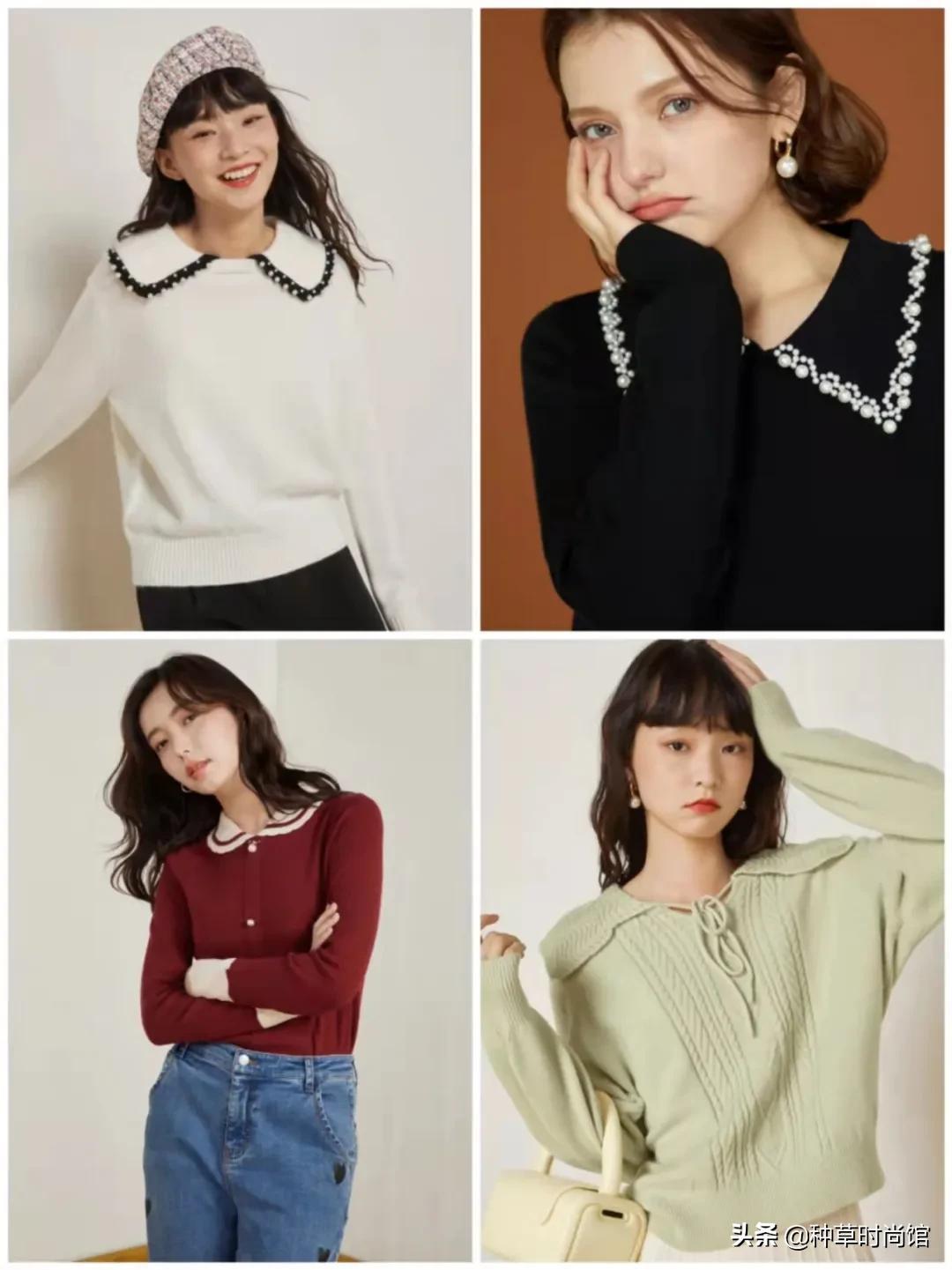 翻领也是一样甜美+简约的装饰思路,领口有了新意,服装整体就多以纯色为主,甜美但不夸张,这就是他家衣服看着清新自然的原因。