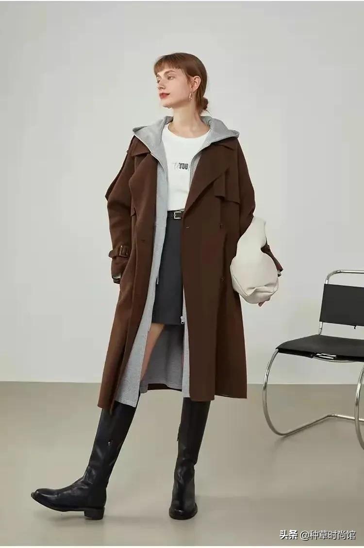 我更偏爱这件风衣式的大衣,它的线条很简单流畅,H版型将身上的肉肉很好隐藏,显高又显瘦,简直是微胖女孩的福音。