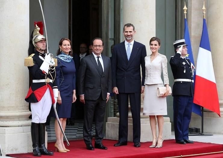 最终的结局是,前任女友罗雅尔得意地站在奥朗德身旁接待来访的西班牙国王夫妇。