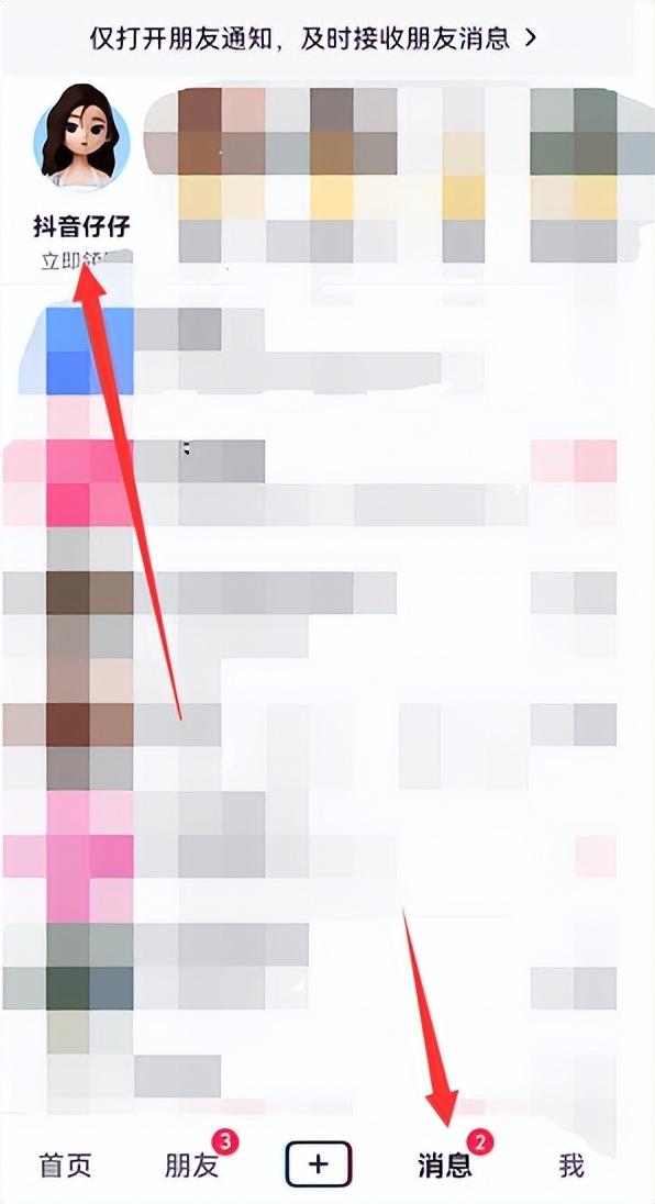 1、打开抖音app点击【消息】,左上角会显示【抖音仔仔】,我们点击进入。