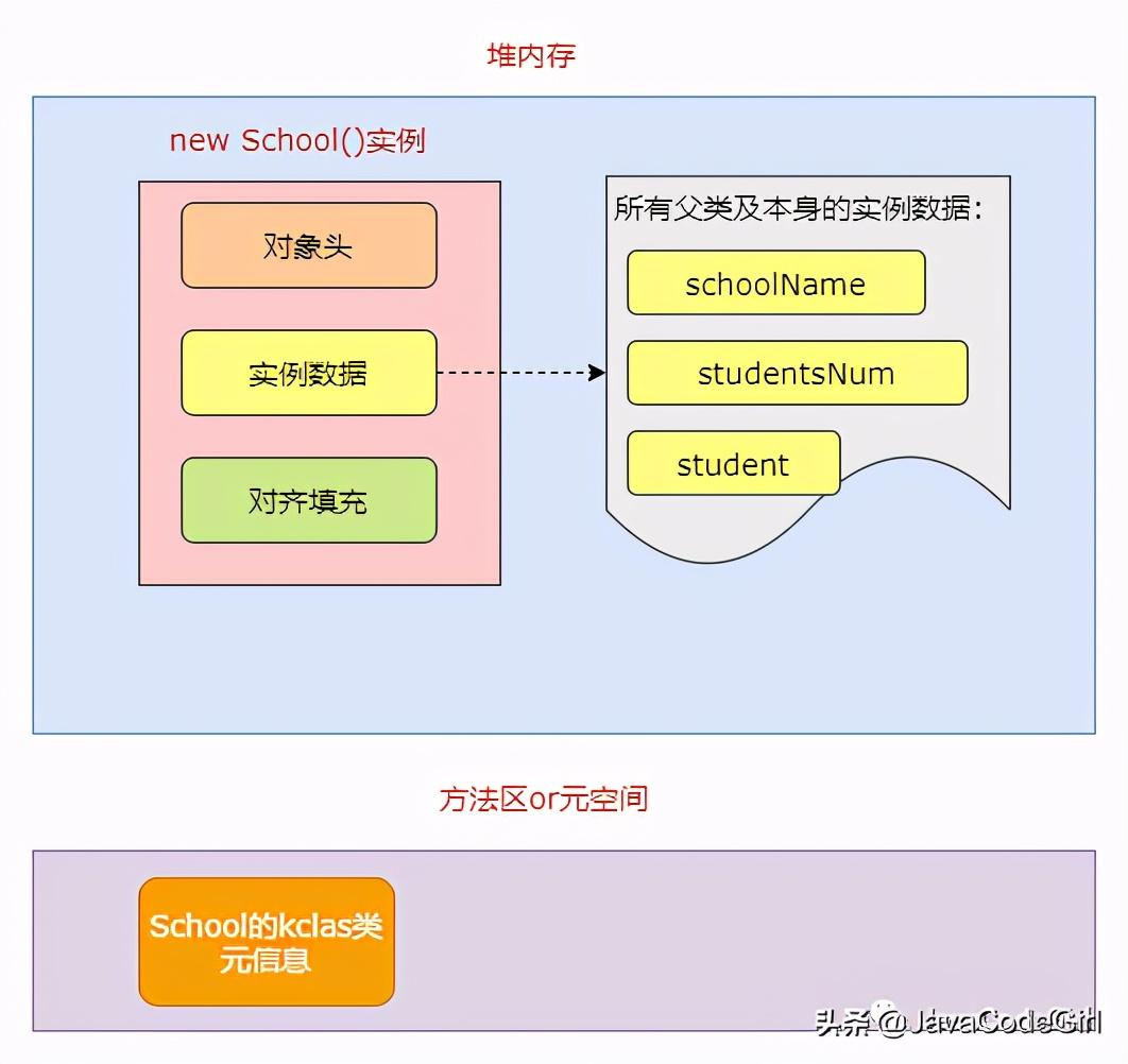 我们使用main函数创建School的一个对象,那么这个过程发生了哪些事情?在JVM内存中多了什么呢?让我们一起看下吧!
