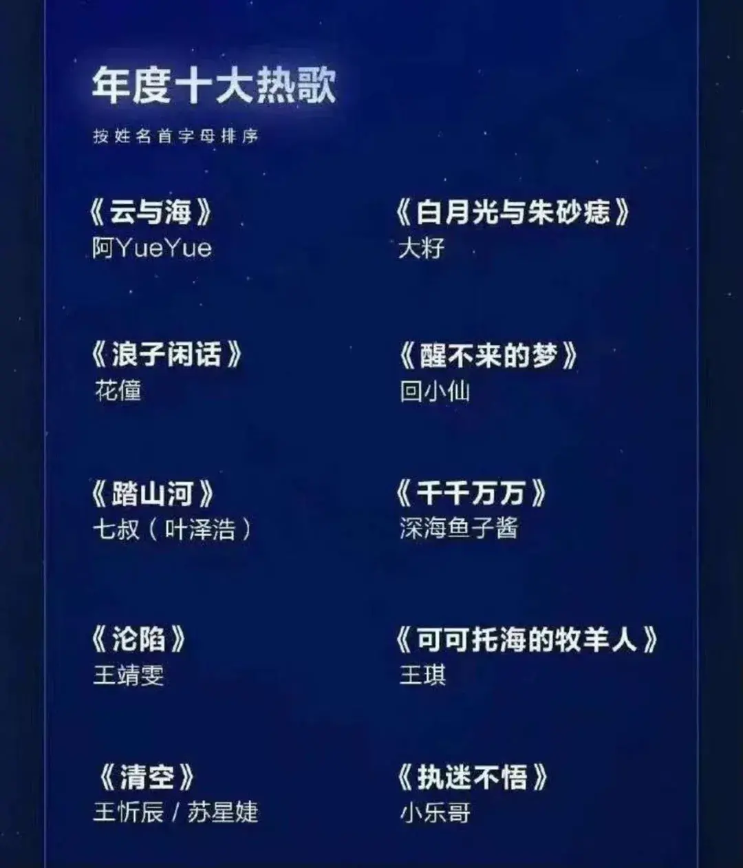 这十首歌,光看歌名,刀哥只能明确听过一两首。