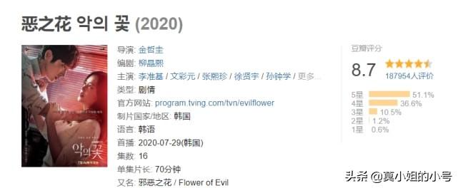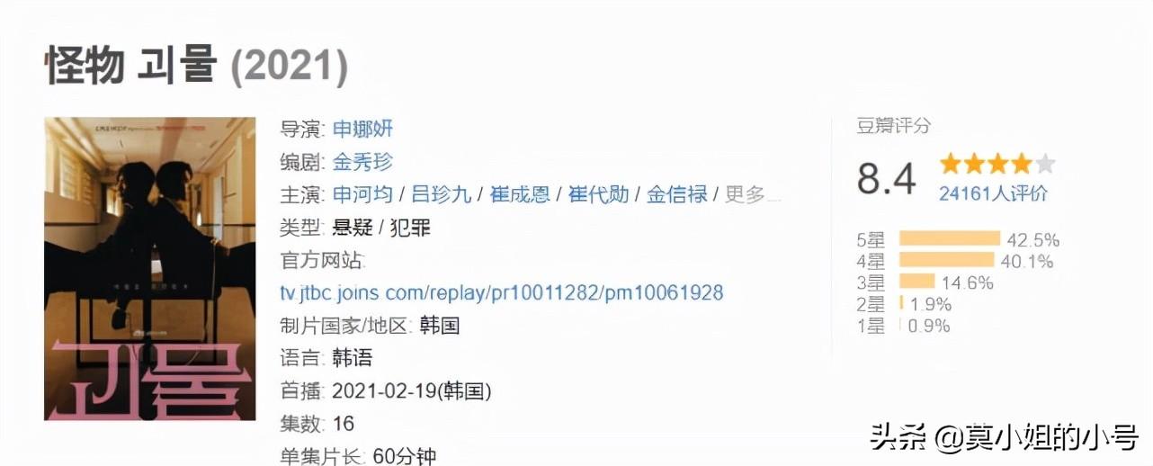 该剧由南宫珉、权娜拉、金炳哲、崔元英等人主演,2019年上映,一共32集,每集32分钟,豆瓣评分至今稳定在8.9分。