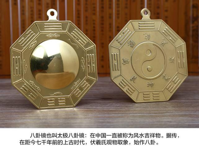 八卦镜在外形上面分为凹镜和凸镜,镜子在五行里面属金,因此具有挡煞消灾的作用。一般在门宅挂镜子的作用是挡煞,当镜子挂在室内,作用是消灾。