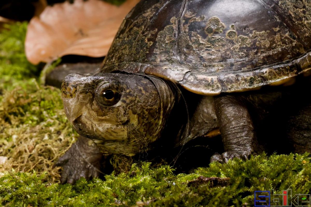 麝香龟:最小的泽龟类品种之一。幼龟的龟壳都是墨黑色而且很粗糙,到成年后龟壳转为圆滑,颜色也淡化成棕色到黑色。名称源于该属的共同特性:受到惊扰时,会释放出一种味道刺鼻的液体,以恐吓略食者。