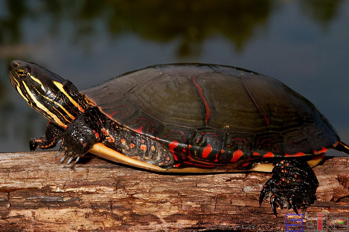 西部锦龟:北美洲几乎任何拥有合适的晒背场地的永久水体,都栖息着这些色彩艳丽的水龟。背甲光滑,呈扁平的椭圆形。色彩从绿色到黑色,部分亚种还带有红色斑纹。它之所以深受爬行宠物爱好者好评,应归功于它对多种栖息环境的适应能力。