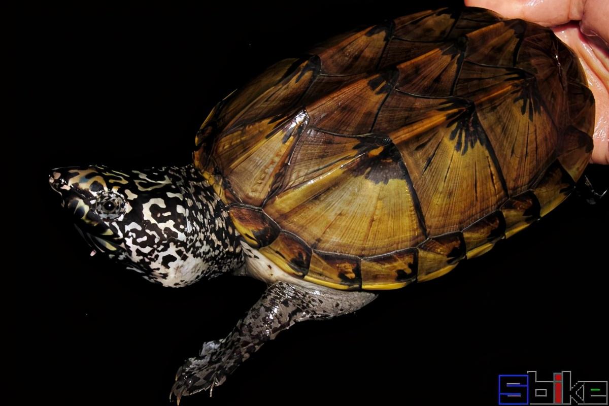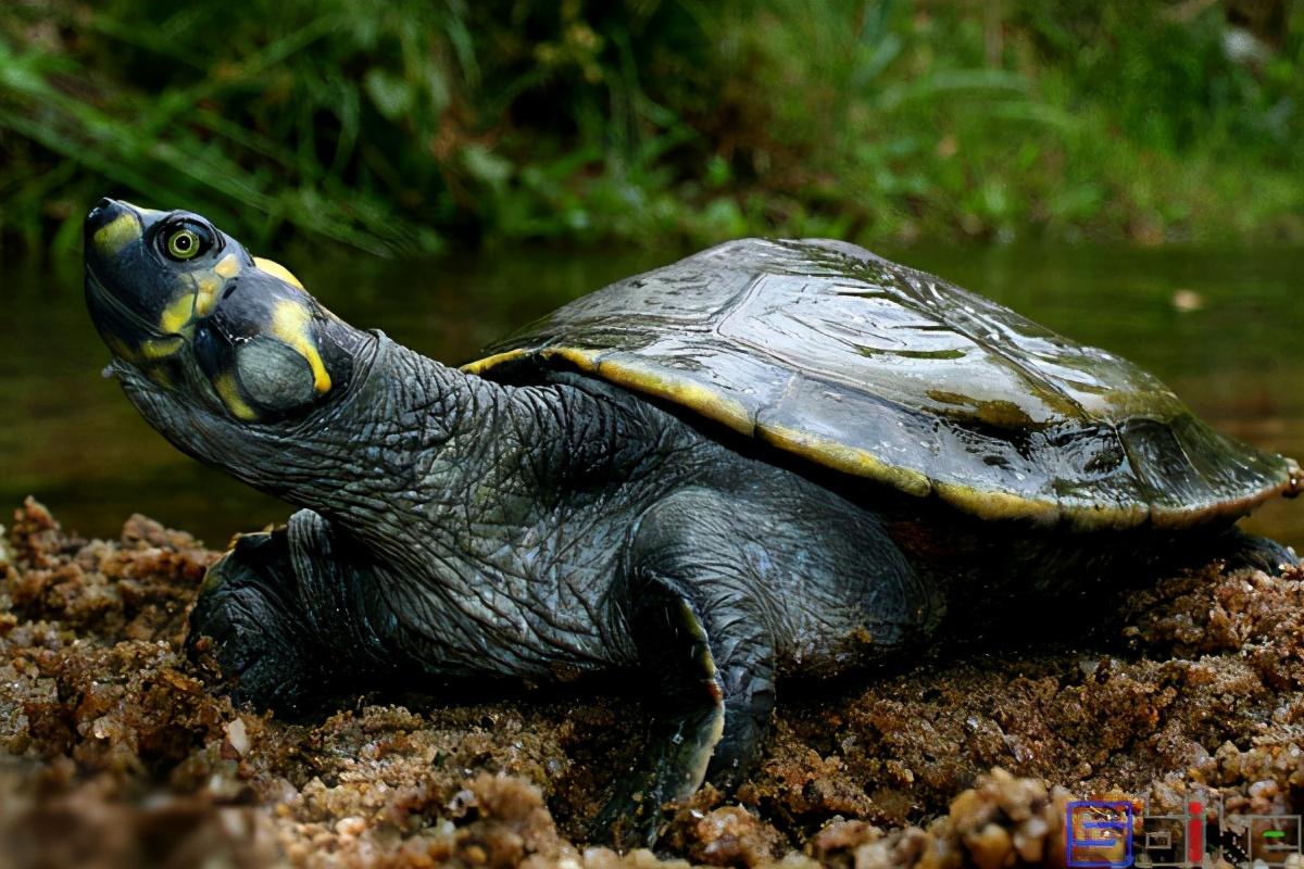 黄头侧颈龟:本属中体型第2大、本属最常见,也是宠物市场较为常见的品种。幼体头部的黄色斑点十分鲜艳,四五年后渐趋暗淡。给人的整个印象就像是一只抹了油彩的小丑龟。