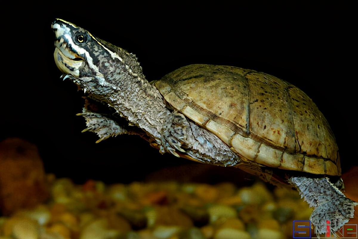西非侧颈龟:与东非侧颈龟非常相似,但它的颜色要深一些。东非侧颈的腹甲是葫芦形的,成体非常明显,这是区别东西非侧颈的重要依据。而沼泽侧颈是体型最扁的,也是分布最广的。东非侧颈基本没有进入过国内市场。