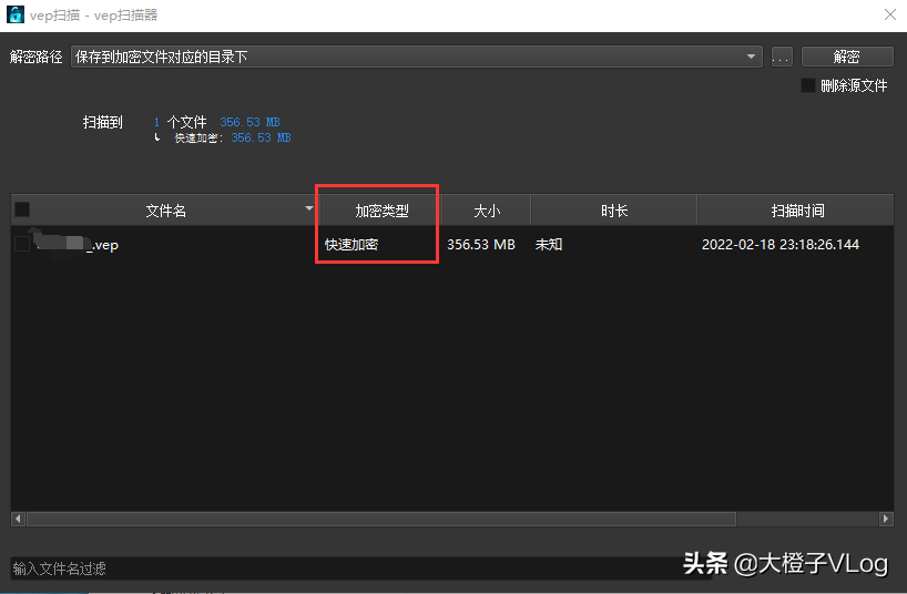 Step 2:随便选一个本地evp文件拖到我们的vep扫描器中,如下图,我这个evp文件采用的是快速加密