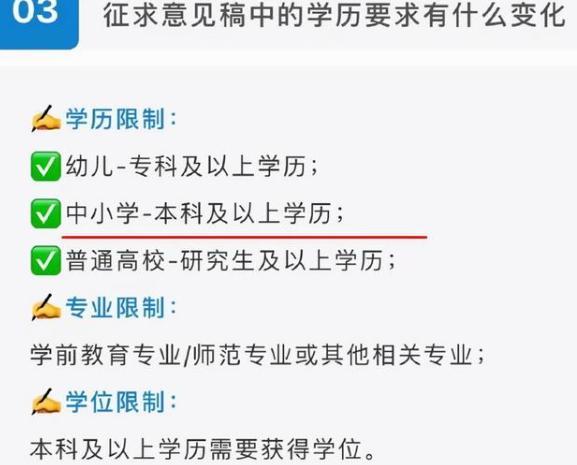 首先是学历上的变化,之前报考小学教师资格证,对专科生没有限制,教师法修订草案针对这一项做出调整,小学教师必须要本科及以上的学历才能报考,而专科生可以报考幼教资格。