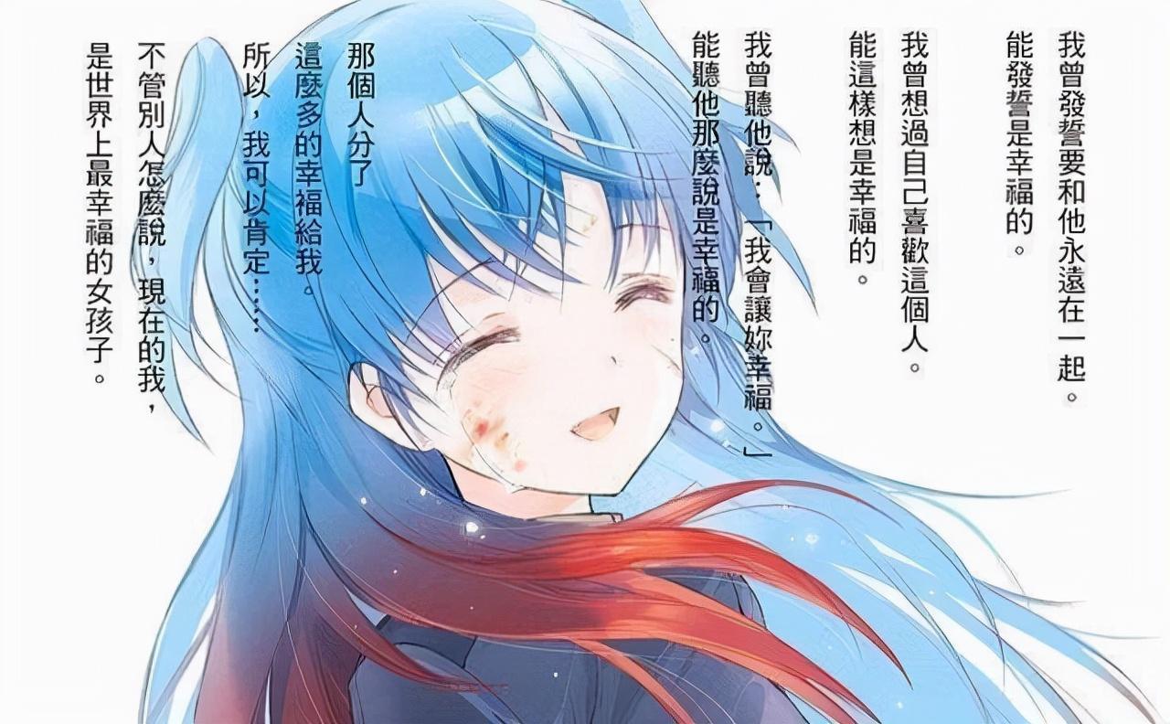 另外还有简称《末日三问》的《末日时在做什么?有没有空?可以来拯救吗?》的女主角珂朵莉,她在迎接自己注定的悲伤命运的同时,也表示自己是“世界上最幸福的女孩”。