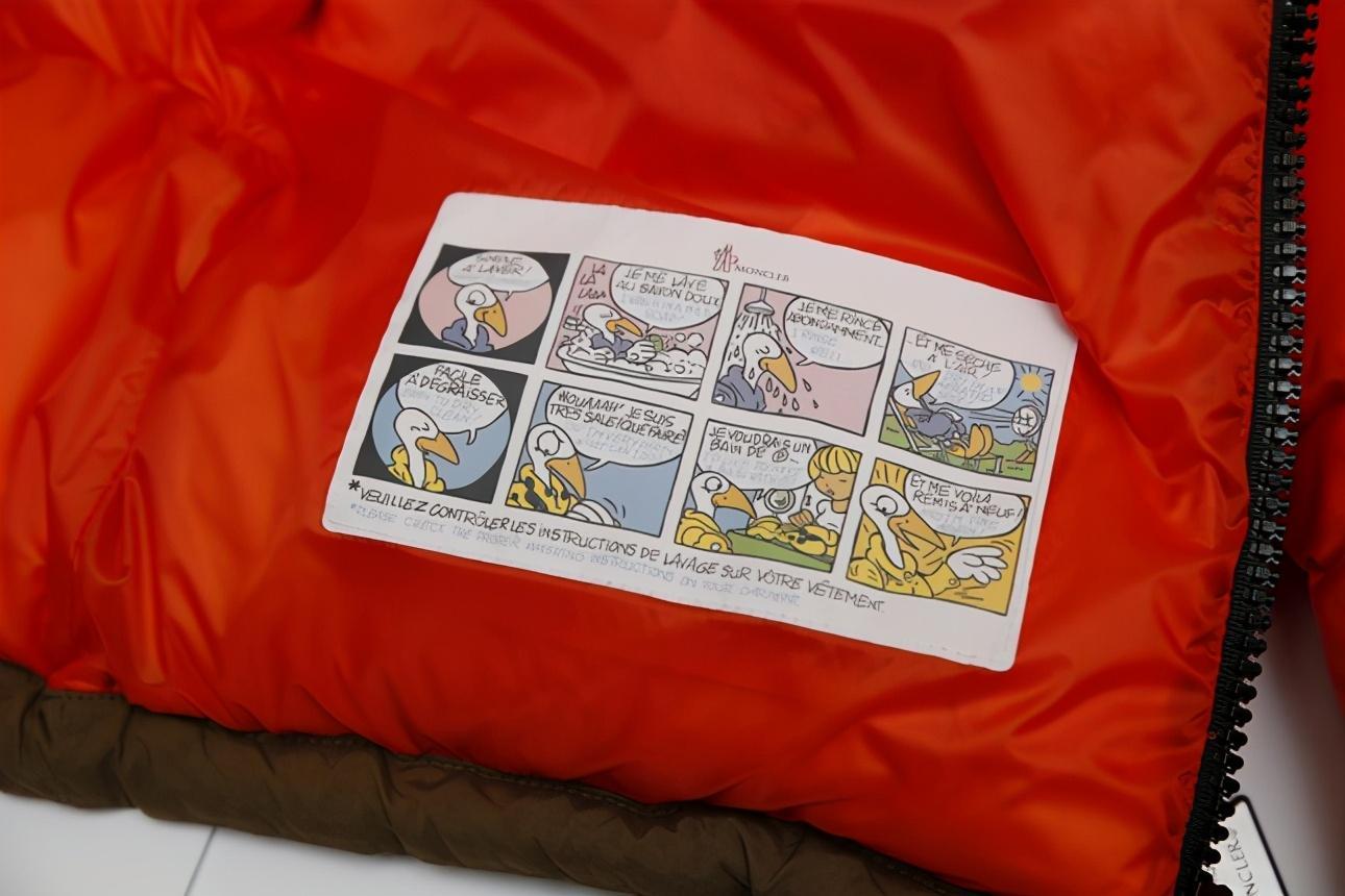 最后Moncler(盟可睐)还有一项有趣的设计,就是在羽绒服内层附上漫画式洗标,幽默的笔触甚至还直接以水鸭当漫画主角,教你该如何清洁与保养羽绒服,才不会破坏减少寿命。
