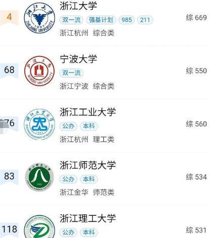 接着我们可以看到,浙江工业大学排在第三,浙江师范大学排在第四,一所是理工类院校,一所是师范类院校,这也就意味着当地的男生女生都有适合报考的院校了。